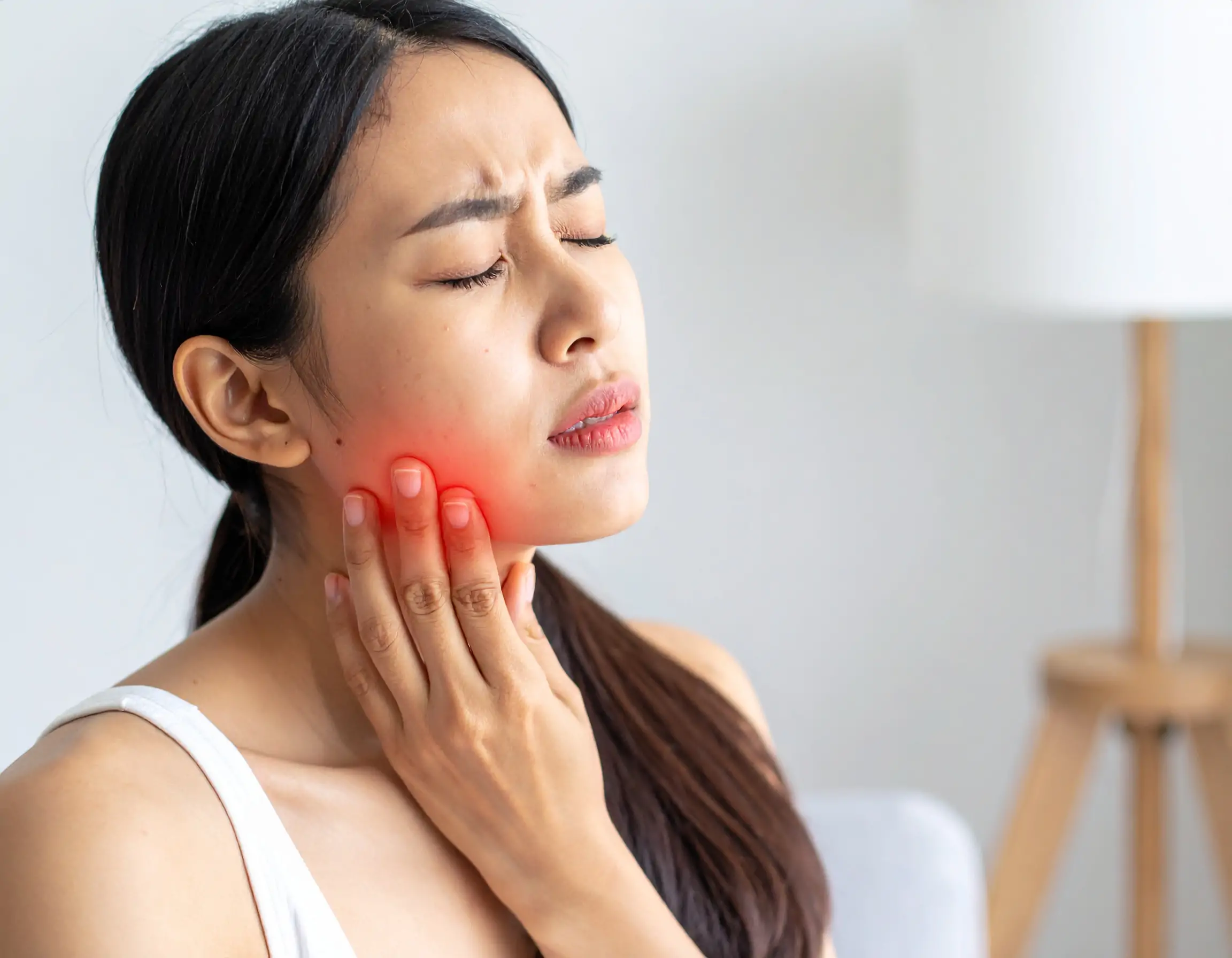 10分間を限度として氷水を入れたビニール袋を痛む部位に当てて冷やし、その後ゆっくりと口を開け閉めする方法を指導します。食事は小さく切り分けて大きく口を開けることを避け、硬い食品は控えていただくよう指導いたします。