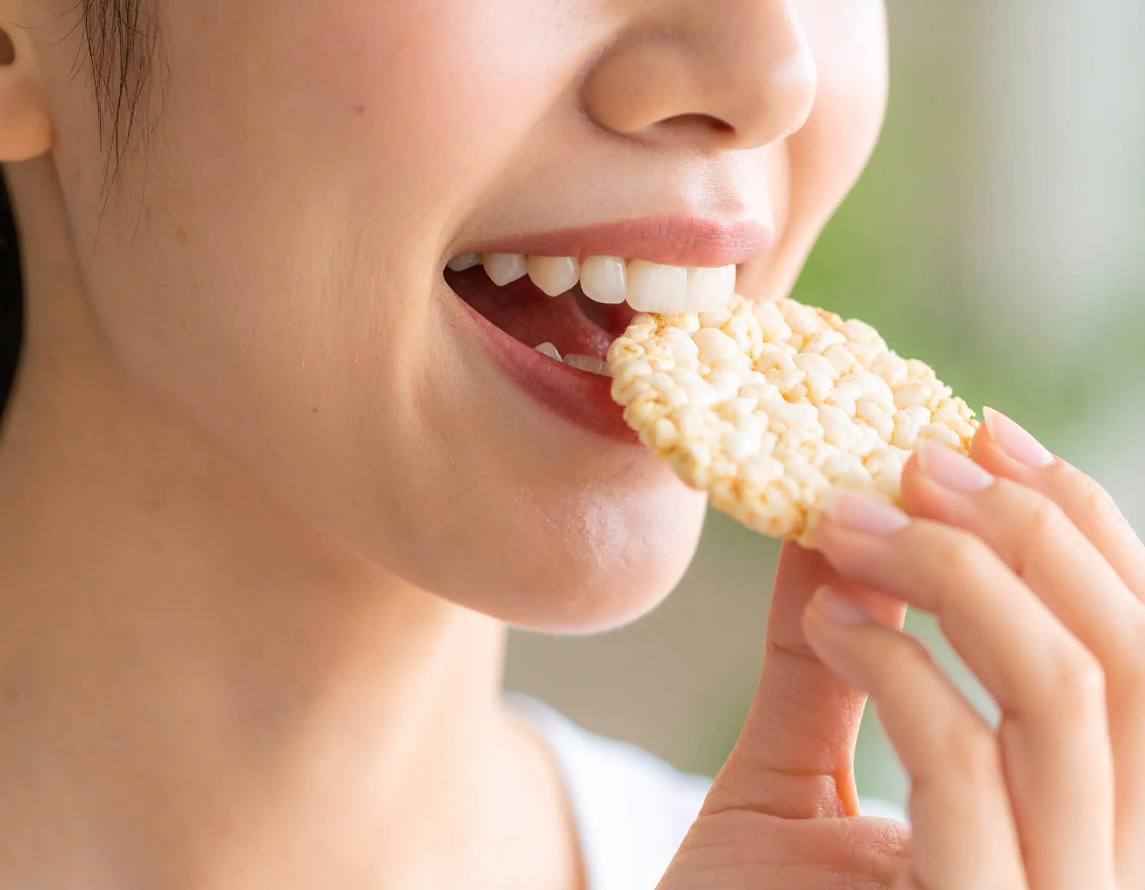 チタンの人工歯根は強く骨と結合するため、天然歯と同じようにしっかり噛むことができます。硬いせんべいやお肉も、違和感なく召し上がっていただけます。今まで遠慮していた食べ物も、再び楽しめるようになります。