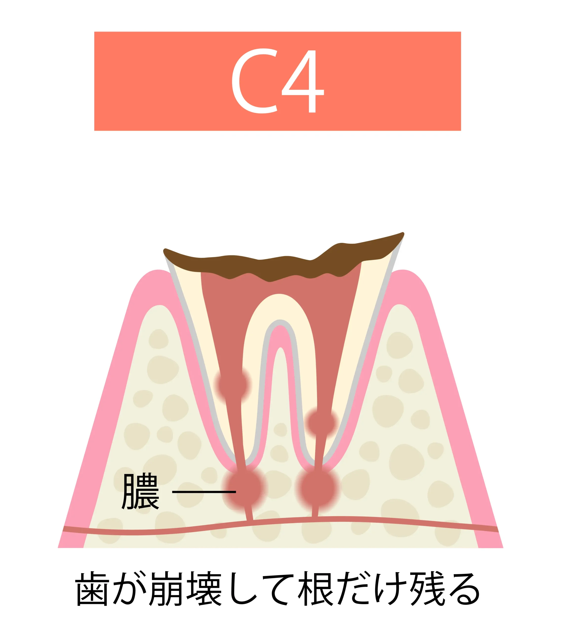 歯根だけ残った重度のむし歯(C4)