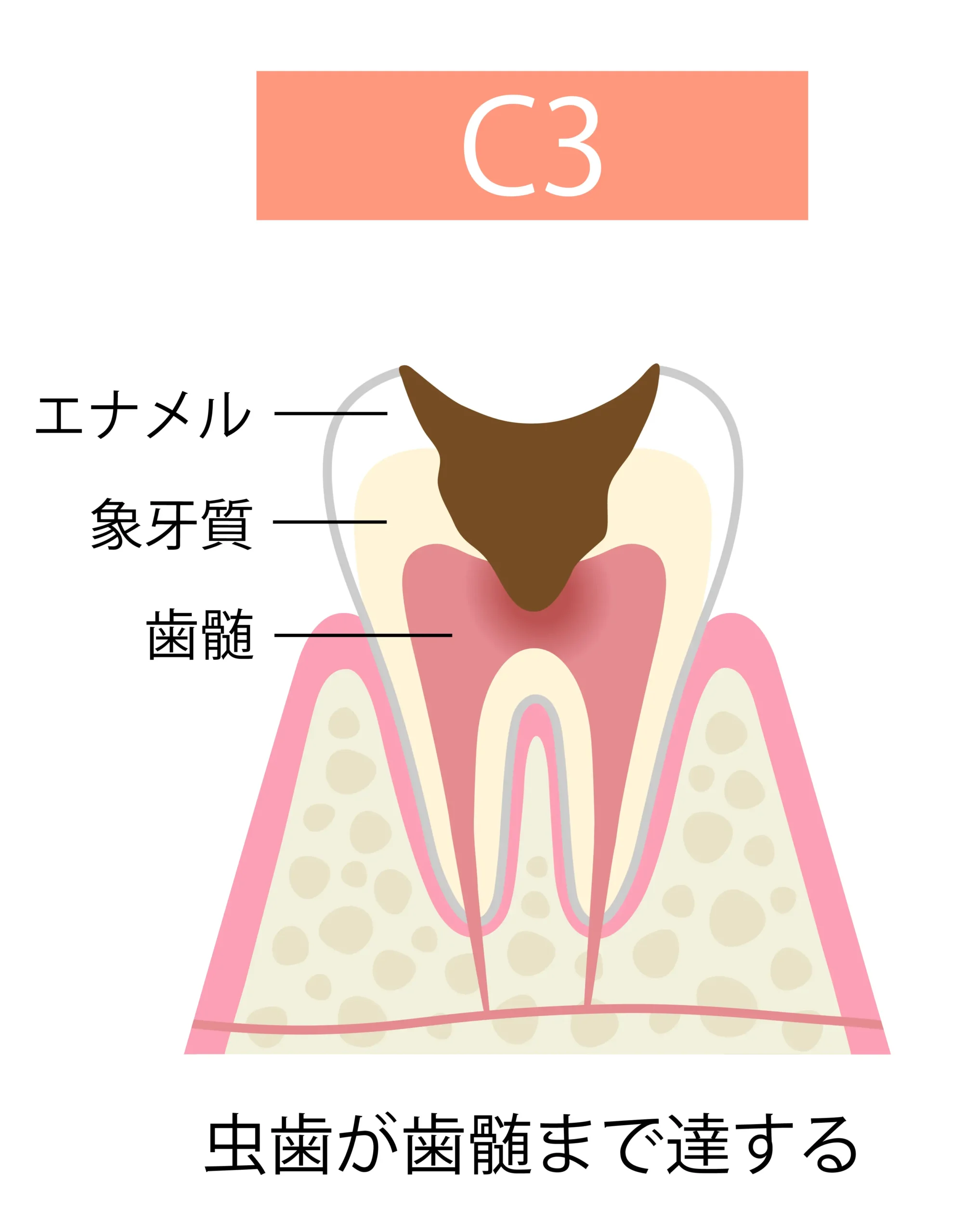 激しい痛みを感じる歯髄のむし歯(C3)