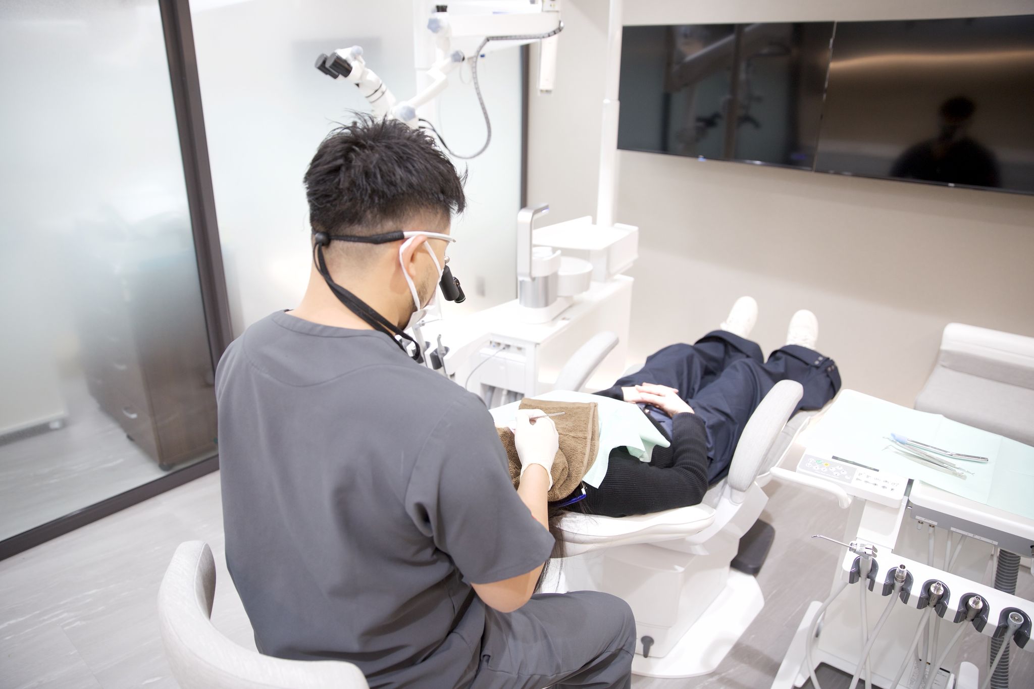 麻酔をしっかりと効かせてから、痛みを感じない状態で抜歯を行います。必要に応じて歯茎を少し切ったり、骨を削ったりして親知らずを取り除きます。マイクロスコープを使って、細かいところまで確認しながら慎重に治療を進めます。